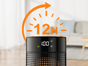 The electric space heater boasts a 12 hour timer, granting you the luxury of uninterrupted sleep on frosty evenings.
