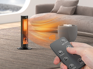 - [Effortless Control] Featuring a clear touch panel and convenient remote control, this electric space heater delivers operational simplicity. With a single touch or the remote's grace, adjust settings seamlessly while you engage in work or indulge in sofa lounging. Plus, the built-in handle not only boosts the heater's mobility but also cleverly doubles as a storage spot for the remote control, ensuring you always know where to find that tiny remote.