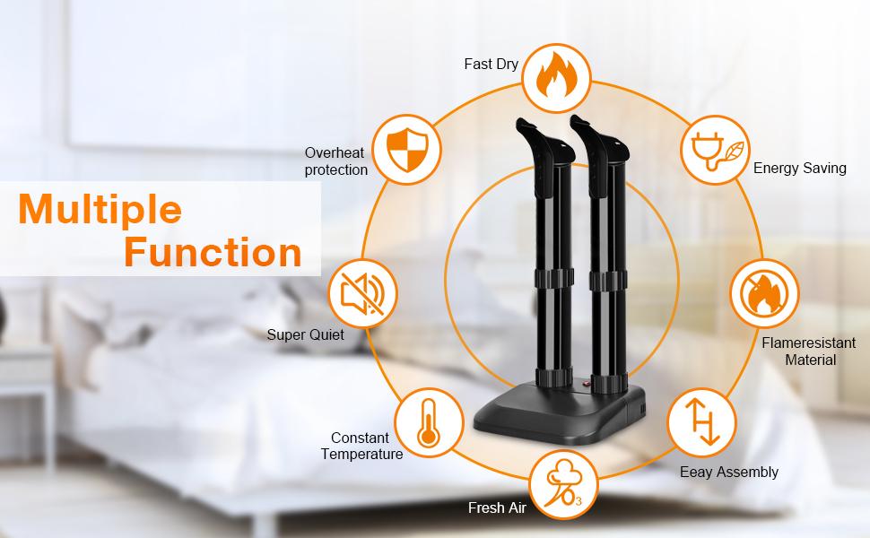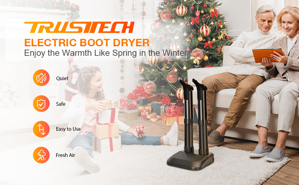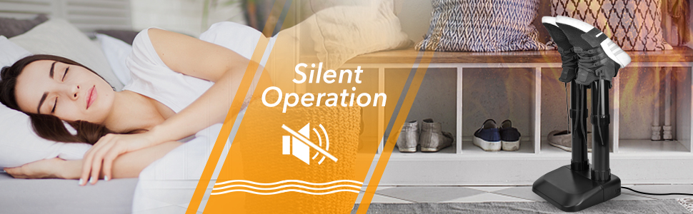 - Silent Operation & Safety Features: The Trustech 2-Shoe Dryer works silently by gently warming air that rises and dries footwear; No loud fans blowing hot air. Flame Retardant materials for added safety. Create a cozy and warm home environment