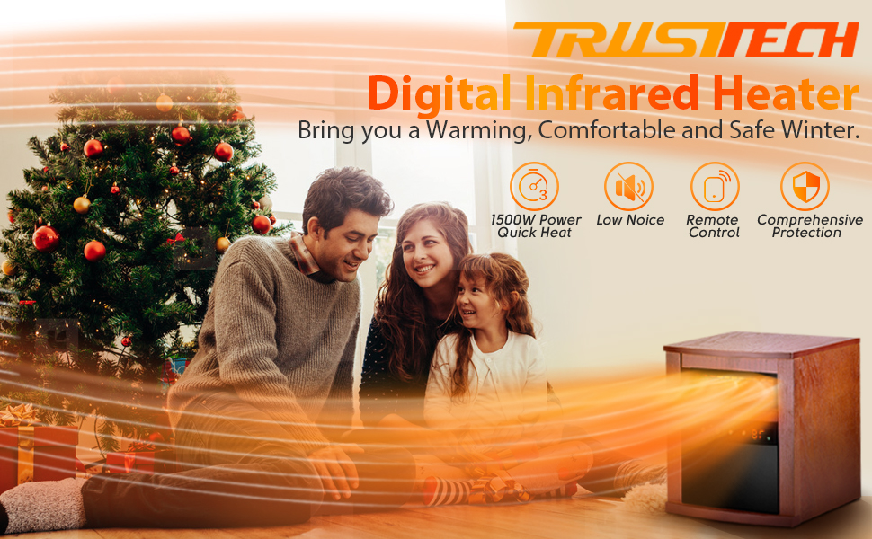 - Remote Control and Smart 12-Hour Timer: Our electric heater carries a timer, which can be adjusted from 0 to 12 hours; The timer is not only for shutting off the room heater; It can also turn the infrared heater with the thermostat on at a time you have set; When you get back home after working all day, you will receive a warm welcome from our room infrared heater; It is of low noise design, so you can also have a peaceful sleep at night; TRUSTECH space heater for indoor use, a warm guardian of your house